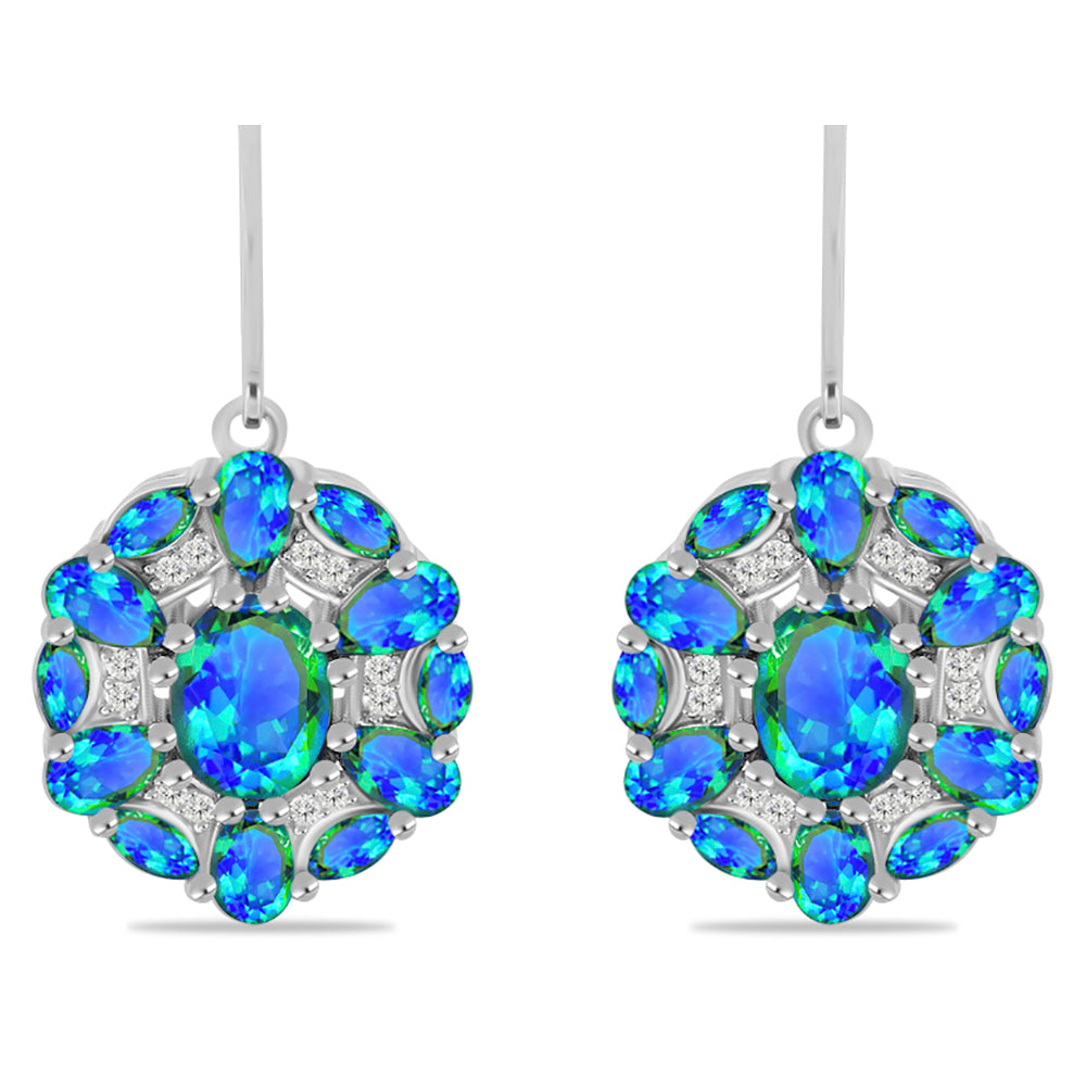 Brincos de Prata com Quartzo Pavão e Topázio Branco