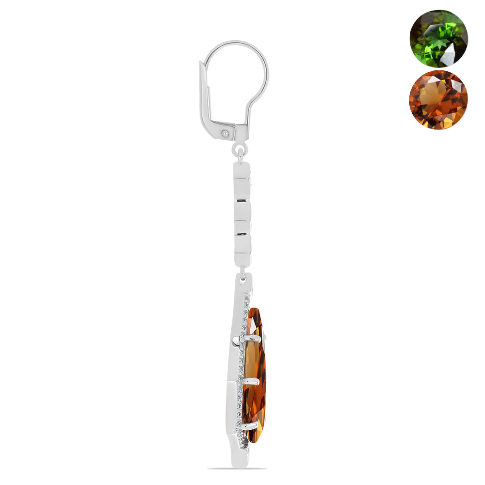 Brincos de Prata com Zultanite da Anatólia certificado e cultivado em laboratório e Topázio Branco / carat: 12.48 / peso apróx. 8.12 gr. CÓDIGO: Y59531 Tamanho da jóia: 58 mm x 11.20 mm Fecho do brinco: Brincos com fecho de alavanca