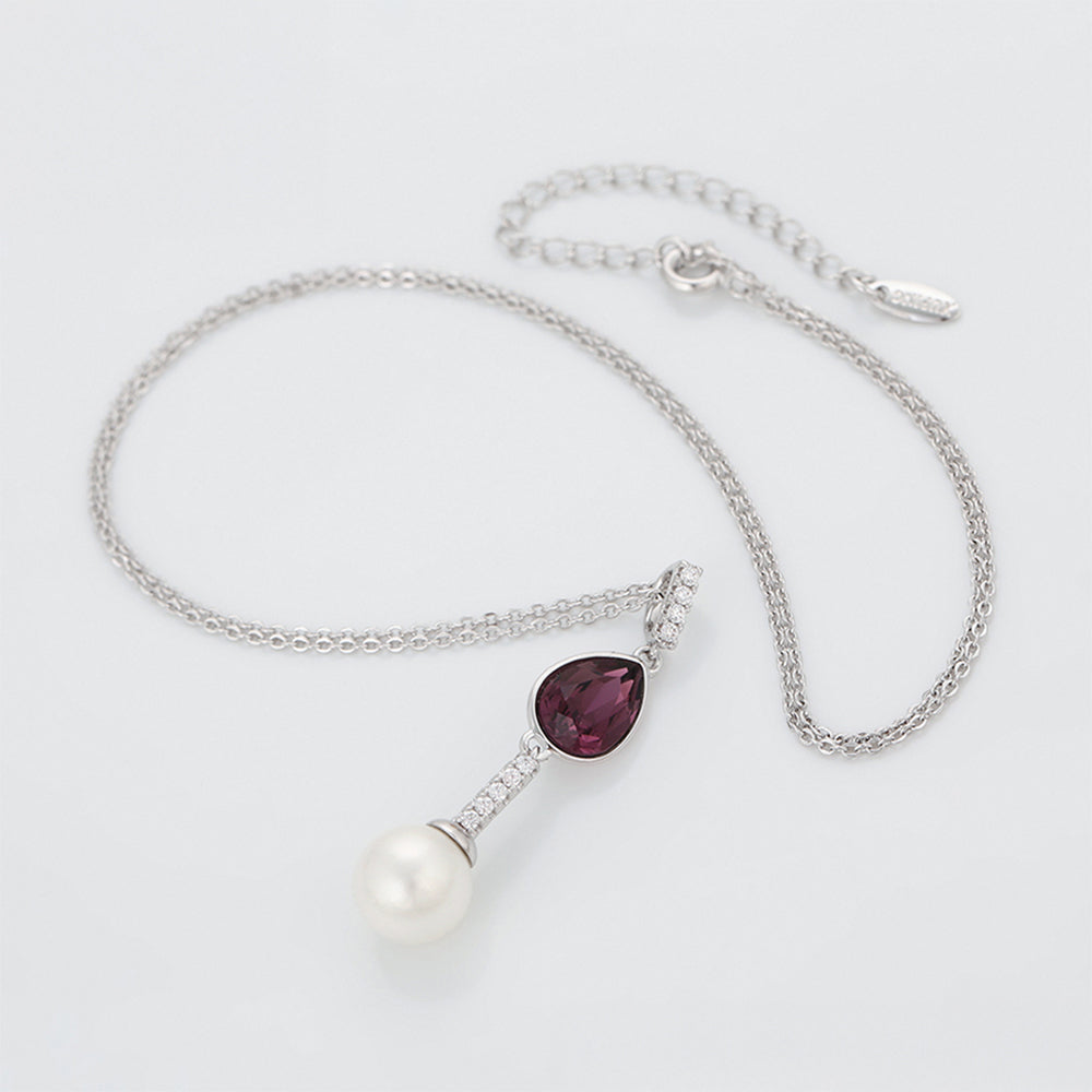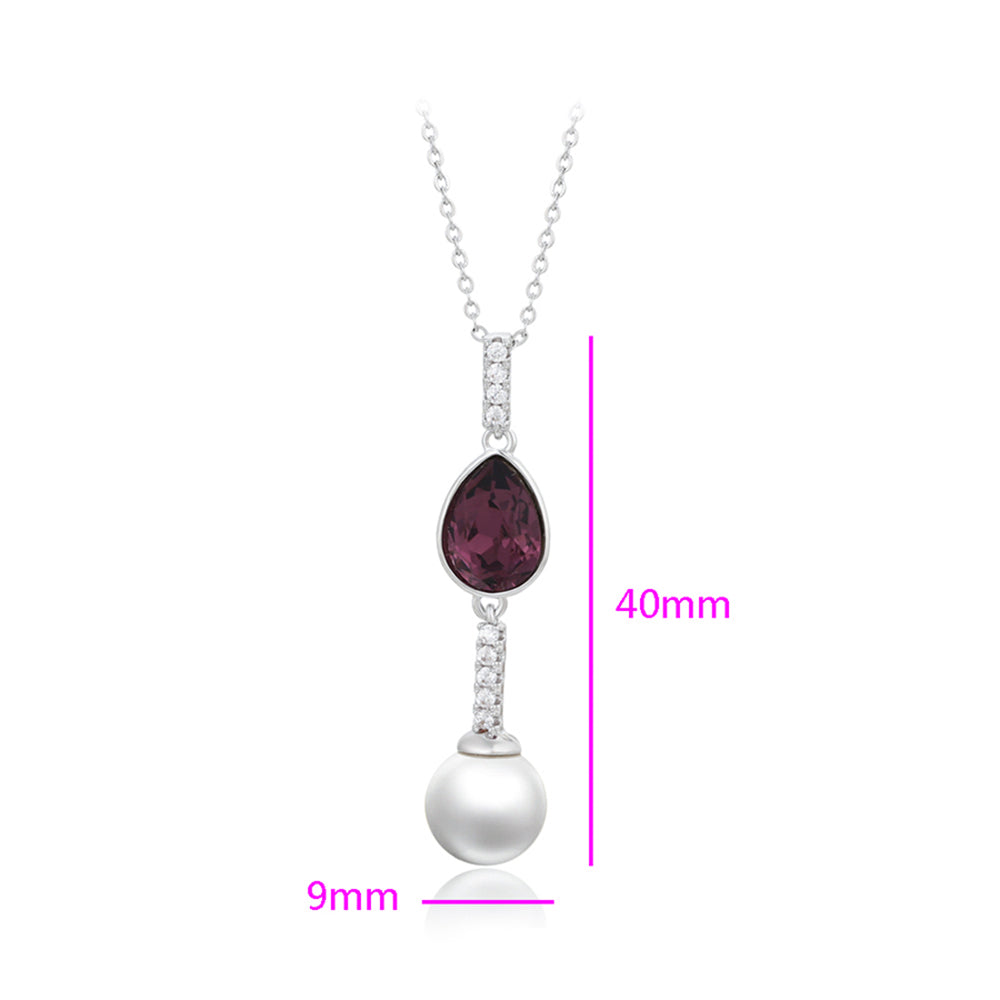 Colar de Liga de Ouro com Cristal Emporia® Roxo e Pérola de Vidro