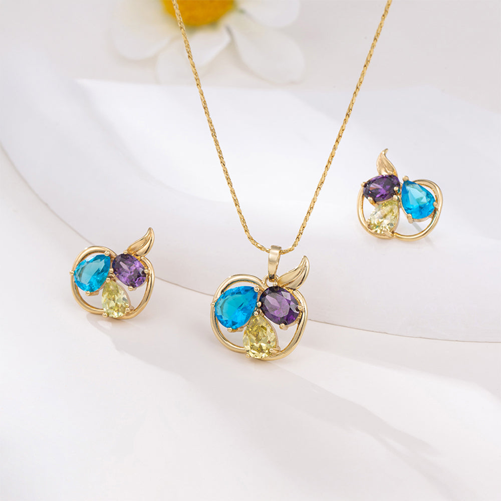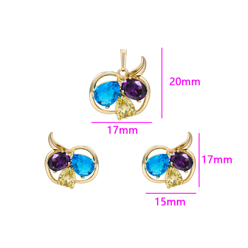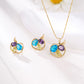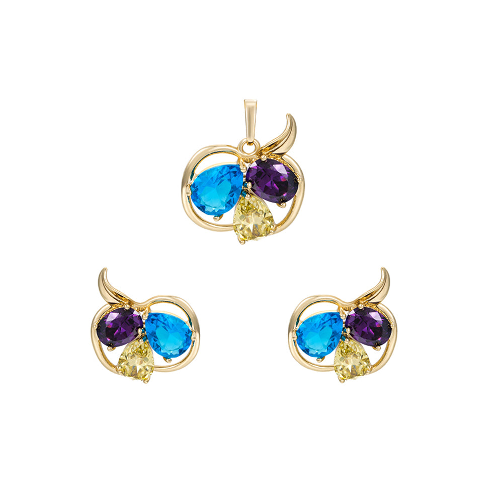 Conjunto de Liga de Ouro com Cristal Emporia® Azul e Cristal Emporia® Branco ( Brincos+Pendente )