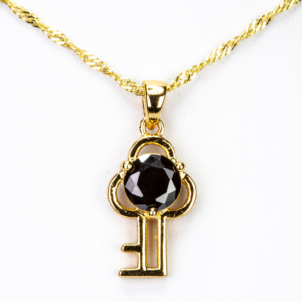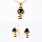Conjunto de Liga de Ouro com Cristal Emporia® Preto ( Colar+Brincos+Pendente )