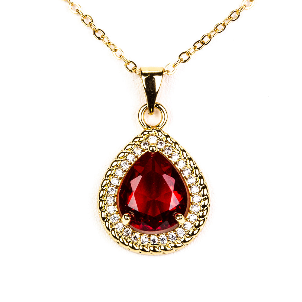 Conjunto de Liga de Ouro com Cristal Emporia® Vermelho ( Colar+Brincos+Anel )