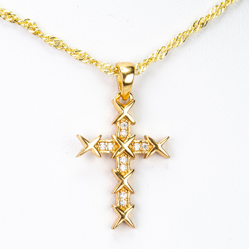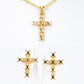 Cruz Conjunto de Liga de Ouro com Cristal Emporia® Branco ( Colar+Brincos+Pendente )