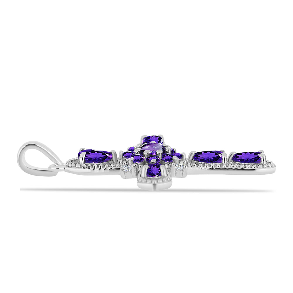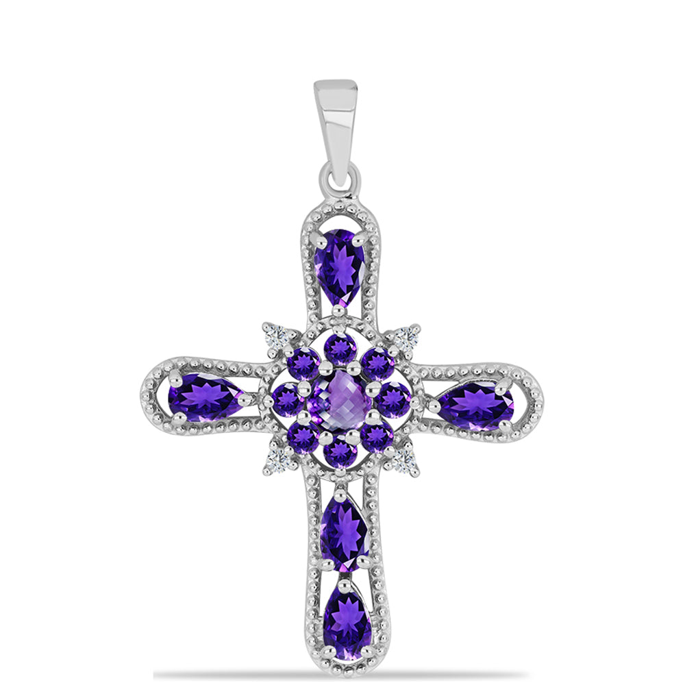 Cruz Pendente de Prata com Ametista de Marrocos e Topázio Branco