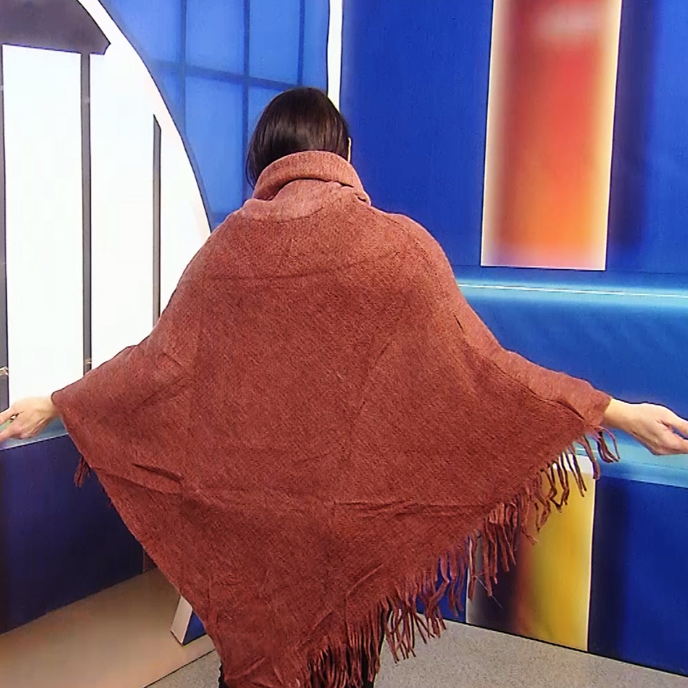 Poncho de gola alta, 50 cm x 70 cm x 335 cm, castanho ferrugento