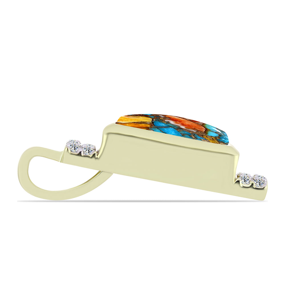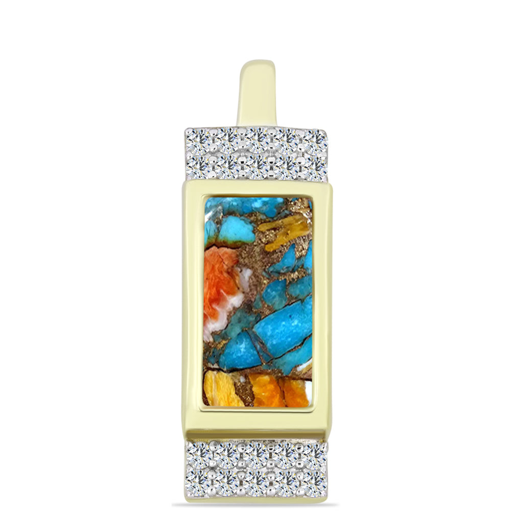 Pendente de Prata com Banho de Ouro com Ostra Turquesa e Topázio Branco / carat: 1.99 / peso apróx. 2.52 gr. CÓDIGO: Y60025 Tamanho da jóia: 21.80 mm x 7.00 mm