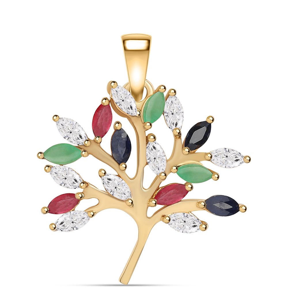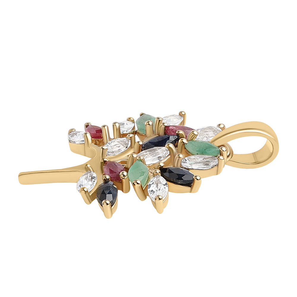 Pendente de Prata com Banho de Ouro com Rubi da Tailândia e Esmeralda do Brasil