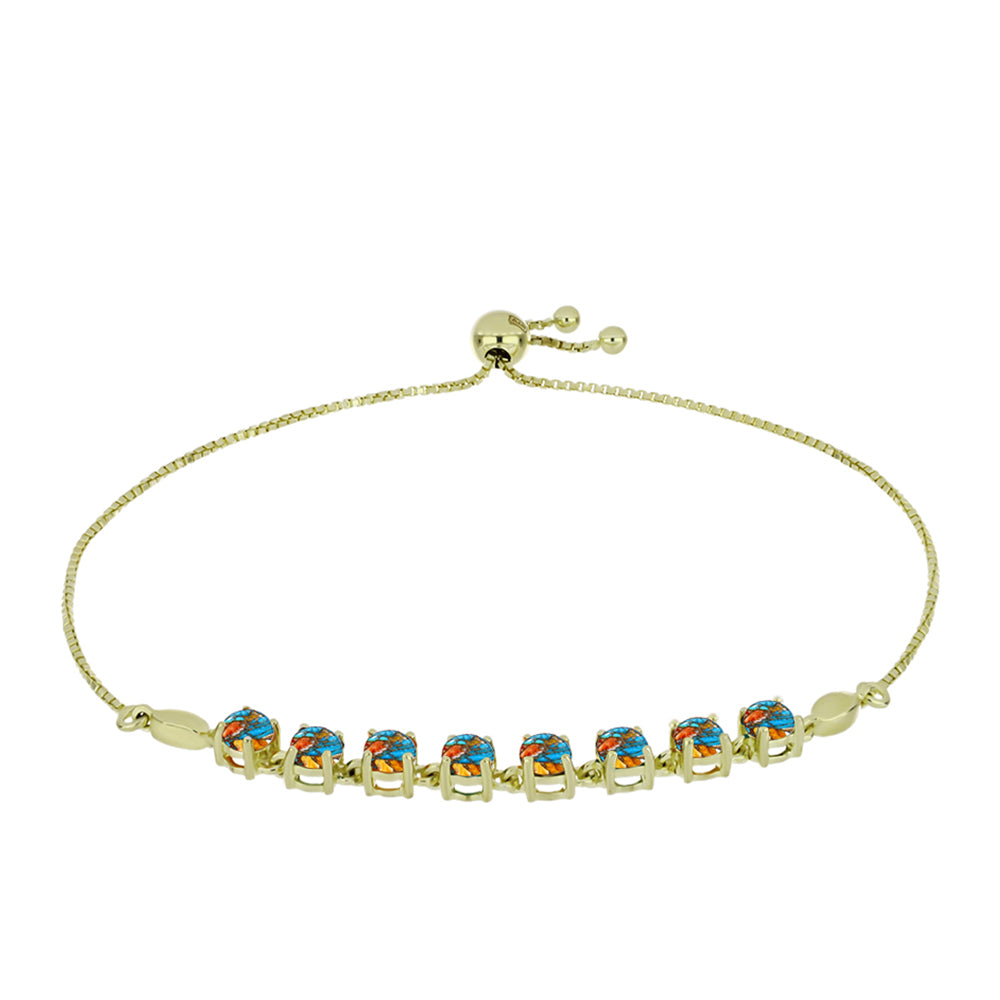 Pulseira de Prata com Banho de Ouro com Ostra Turquesa Contraste: Cabeca de Veado (800)