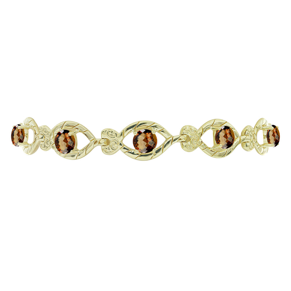 Pulseira de Prata com Banho de Ouro com Quartzo Cognac / carat: 4.08 / peso apróx. 7.49 gr. CÓDIGO: Y59048 Tamanho da jóia: 210 mm x 10.20 mm Contraste: Cabeca de Veado (800)