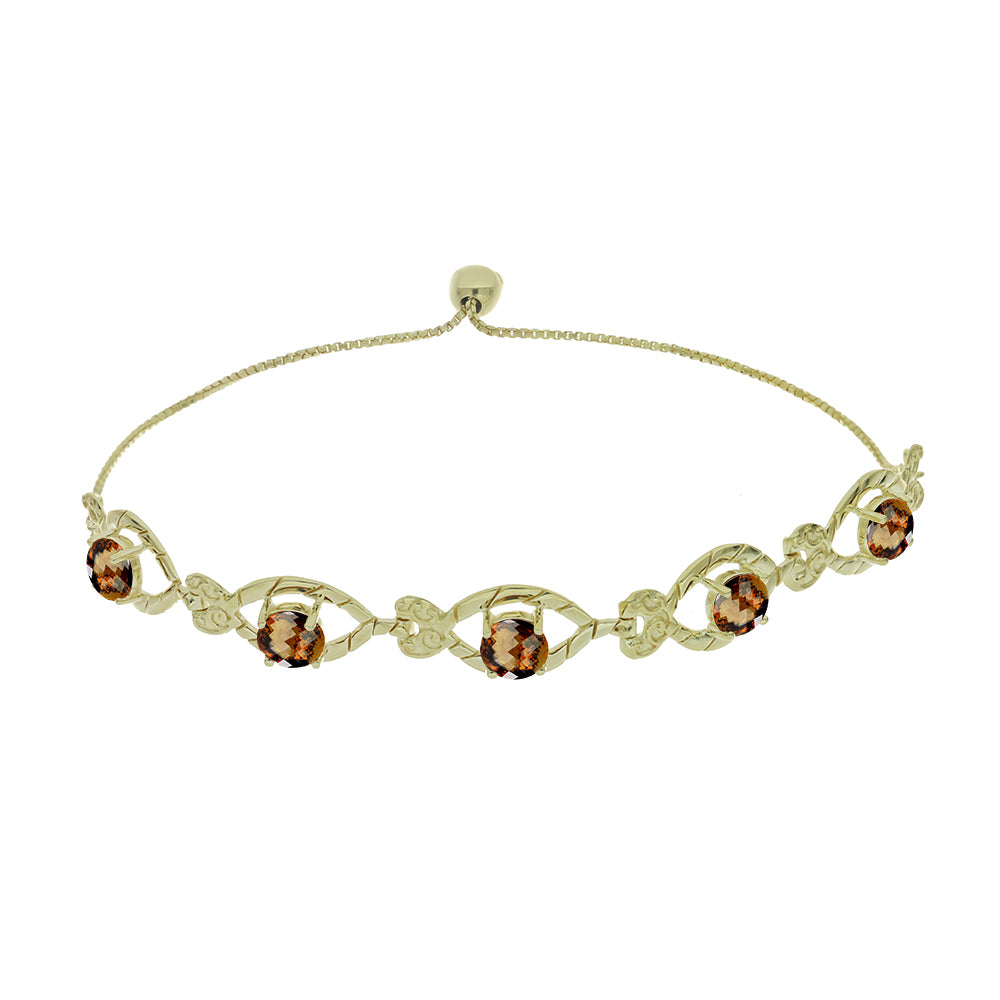 Pulseira de Prata com Banho de Ouro com Quartzo Cognac Contraste: Cabeca de Veado (800)