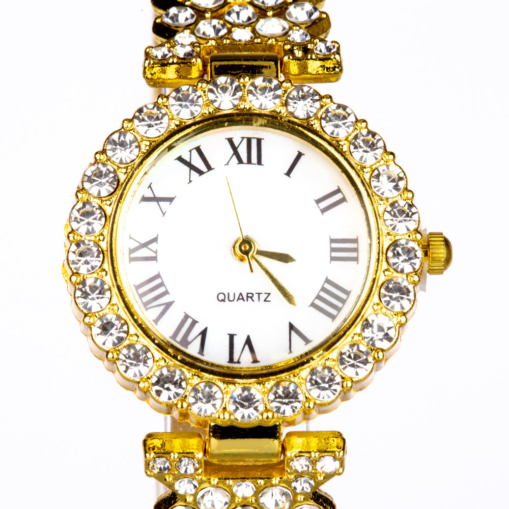 Relógio de Liga de Ouro com Cristal Emporia® Branco (Colar+Brincos+Pulseira+Pendente) CÓDIGO: EFXSET02